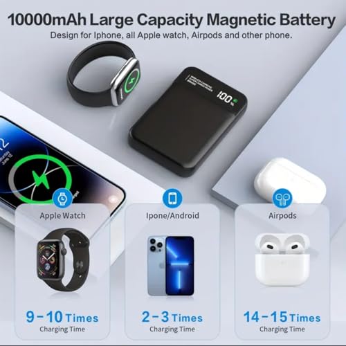 Magnetic Power Bank 10000mAh,3-in-1 Wireless Portable Charger,22.5W PD Fast Charging with LCD Display Compatible with All iPhone 15/14/13/12/iWatch/Airpods/Galaxy Phones Series