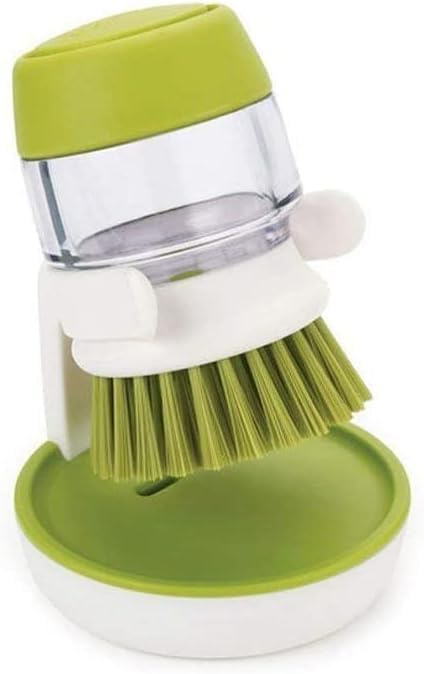 Multi-Purpose Palm Scrubbing Dish Brush with Soap Dispenser and Stand - Quick Drying Design for Kitchen Sink Cleaning, Dish Brush Alternative (Grey)