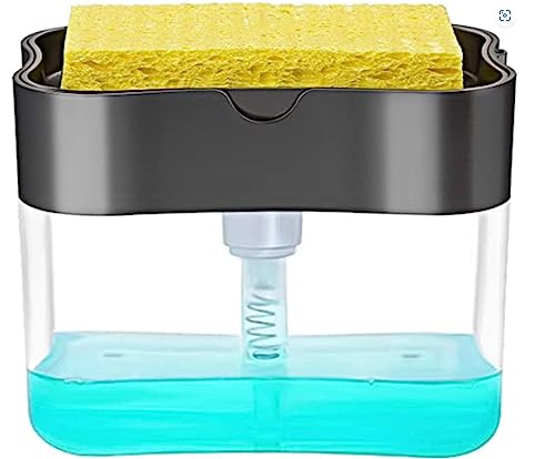 Kitchen Soap Dispenser with Sponge Holder - Samadex Countertop Kitchen Soap Dispenser, Sink Dish Washing 13 Ounces, Dish Soap Dispenser with Caddy - No More Messy Spills (Grey)