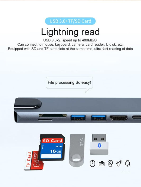 New USB C Hub, 8 in 1 USB C Hub Multifunctional Docking Station, Multiport Adapter w/Gigabit Ethernet, 100W PD, HDMI 4K, 3.0 USB, USB C Data Port, SD/TF Card Reader, Dongle Docking Station for Laptop